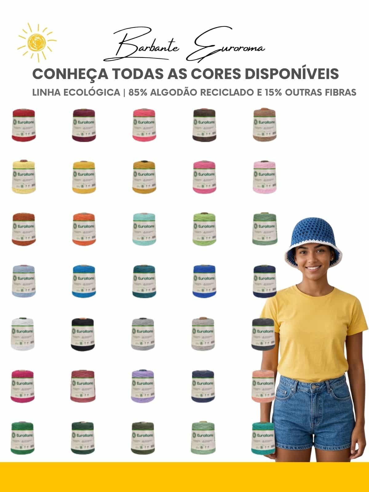 - Feito no Barbante EuroRoma 6, composto por 85% de algodão sustentável. É uma peça que respeita o meio ambiente e traz a resistência necessária para um acessório de qualidade.