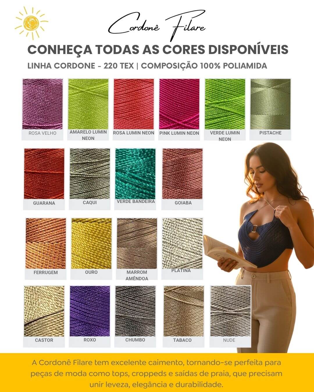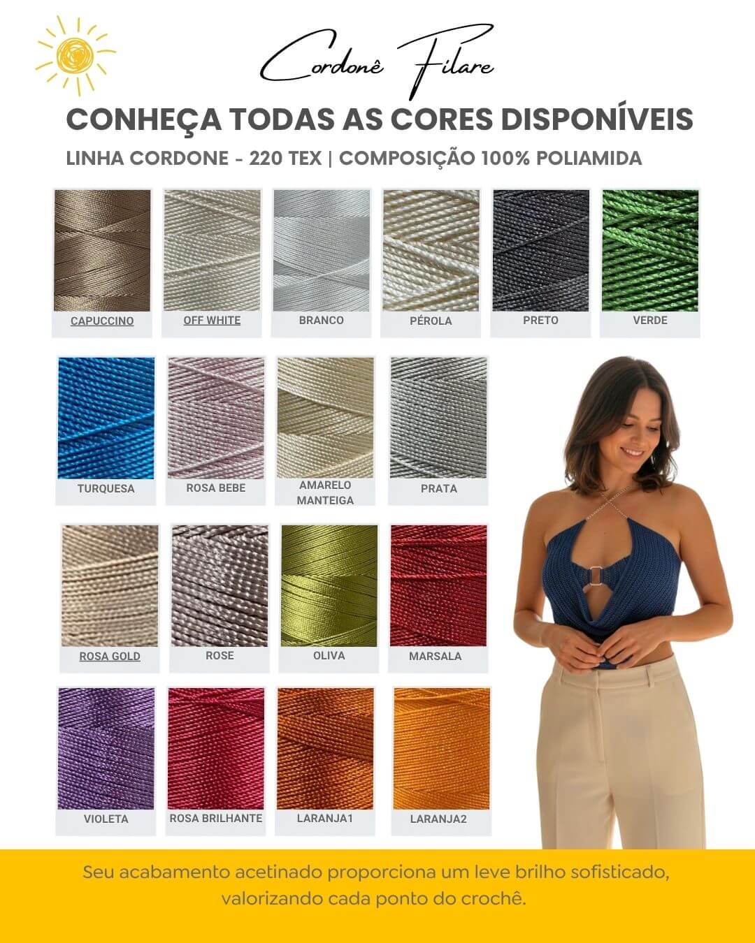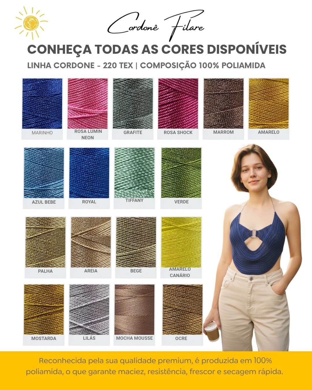 ✔️ Material: Linha 100% Poliamida Cordonê Filare – leve, durável e de secagem rápida