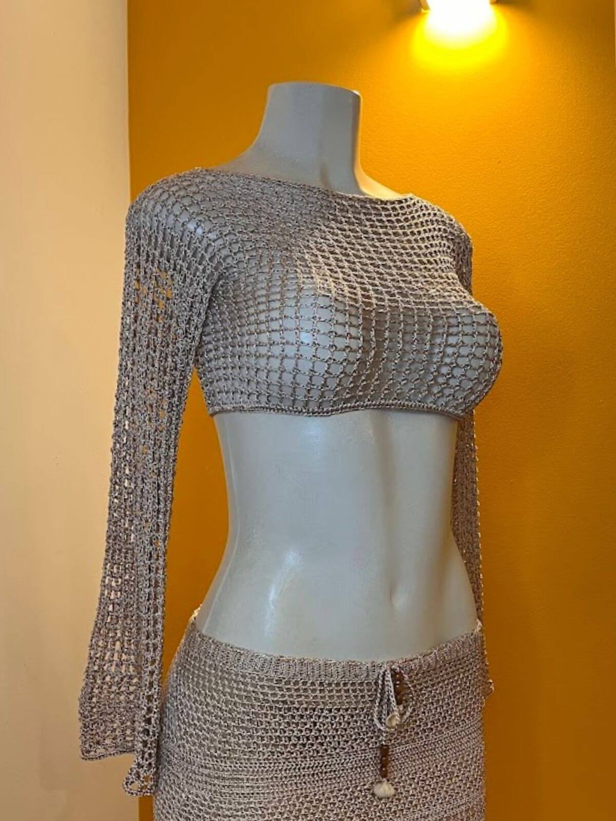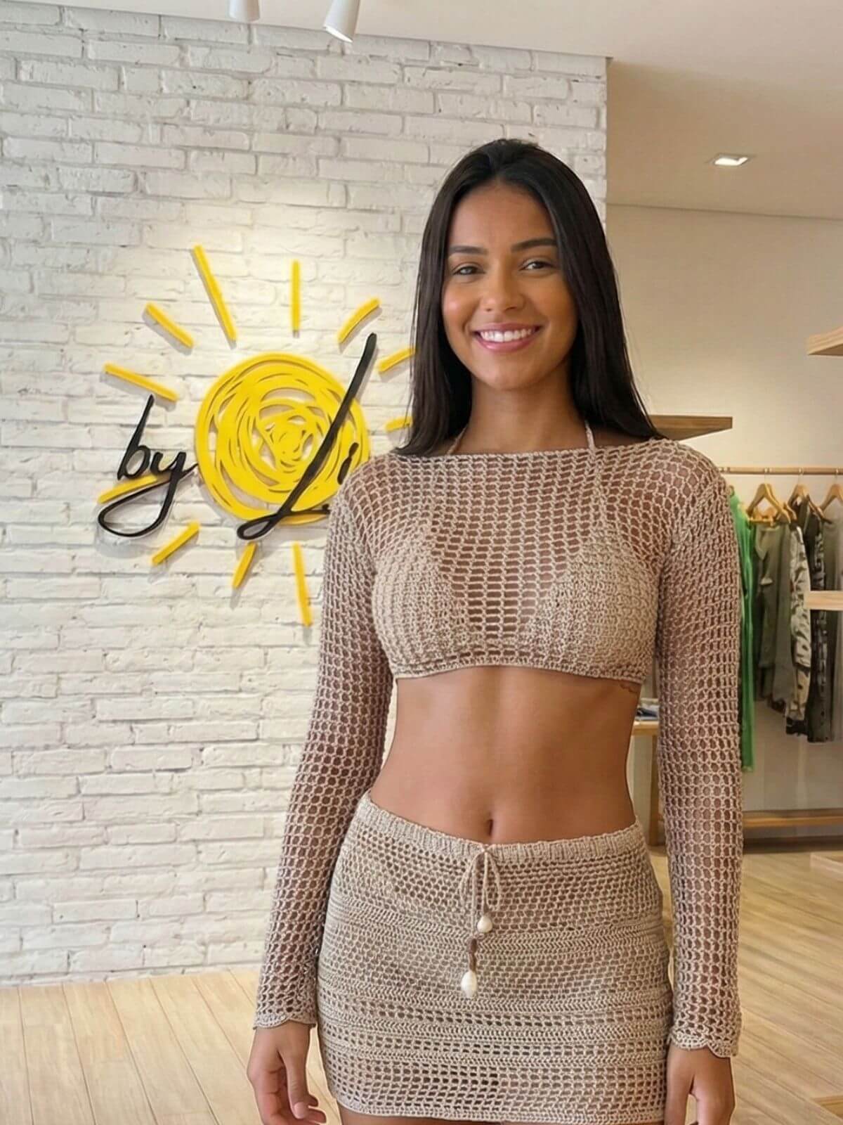 ✨ Os detalhes que encantam: cada ponto deste Cropped revela o cuidado do trabalho artesanal. A trama aberta em ponto rede (telinha) traz uma transparência moderna e sensual, perfeita para sobreposições, enquanto o caimento fluido da Linha 100% Poliamida Cordonê Filare valoriza o corpo com suavidade. As mangas longas adicionam um toque de sofisticação e mistério, transformando o visual praiano em uma produção cheia de personalidade — ideal para transitar da areia para um fim de tarde elegante.